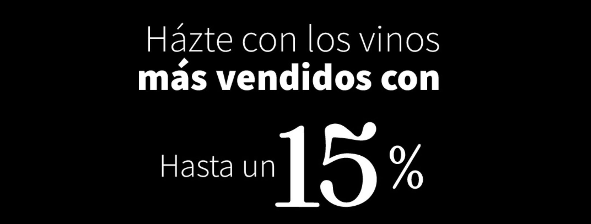 - Vinos tintos, blancos y espumosos con hasta un 40% de descuento.