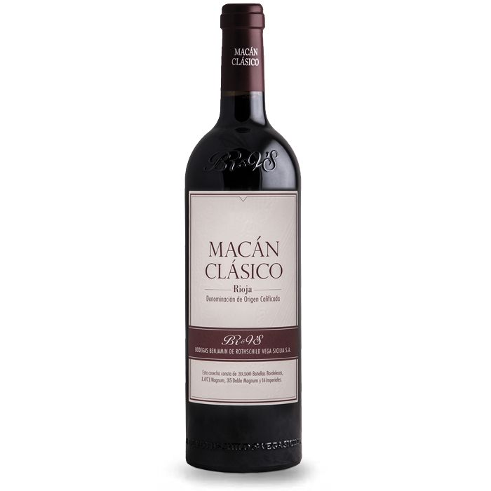 Macán Clásico es un vino tinto monovarietal de Tempranillo elaborado por la bodega Benjamín de Rotschild & Vega Sicilia en la D.O.Ca. Rioja. Dos grandes nombres de la vitivinicultura mundial se unen para crear un vino que busca la armonía a través de la expresión de sus raíces. Es así como nace. Las uvas con las que se elabora provienen de parcelas de más de 30 años que se vendimian bajo estrictas normas de calidad y selección para garantizar la calidad de los vinos que de ellas se obtienen. Macán Clásico y su hermano mayor, Macán, coexisten desde el primer momento pues siguen el mismo proceso de vinificación. Ambos realizan la fermentación maloláctica combinada, en depósitos de acero inoxidable y en barricas, en un 70% y 30% respectivamente, y se crían durante 15 meses en barricas nuevas de madera francesa de grano fino y extrafino. Esta aparente sencillez nos regala un vino que refleja el carácter de la tierra pero que se ofrece accesible, de trago fácil, sin perder el sello de elegancia que distingue a sus creadores.